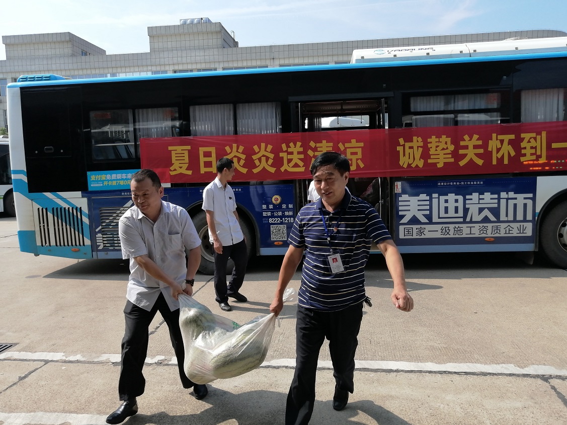 本次慰問活動(dòng)由集團(tuán)公司黨委副書記劉曙光、公交中心副主任黃文帶隊(duì),兵分三路深入各公交大隊(duì)、維修公司、充電站場、集團(tuán)總部開展“夏送清涼”慰問工作,向堅(jiān)守在一線的廣大員工表達(dá)感謝和慰問,并送上西瓜、綠豆、白糖等物資,把清涼送到員工身邊,把公司關(guān)懷送到員工的心坎上。